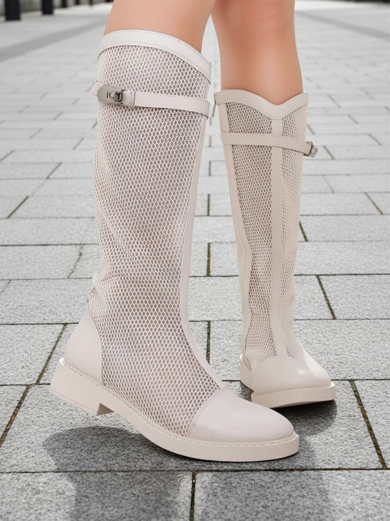 - Botine unice pentru femei dintr-un material asemănător plaselor și ecopiele cu o finisare perforată și branț din ecopiele. Modelul se închide cu un fermoar. Perfecte pentru ținutele de toamnă!