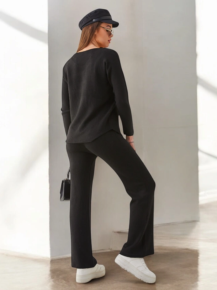 - Set de pulovere pentru femei dintr-un material plăcut. Pulover cu decolteu în V, are mâneci lungi. Pantaloni largi cu talie elastică. Un articol esențial în acest sezon! NOTĂ: Acuratețea măsurătorilor (+/-) 1 cm.