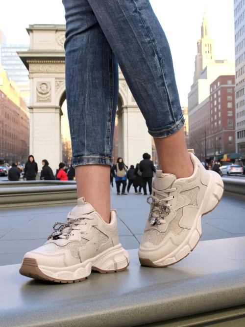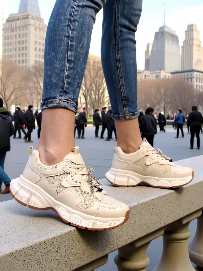 - Pantofi sport pentru femei, realizați din piele ecologică și plasă. Model pe o talpă mai groasă. Partea superioară împletită. Se vor potrivi perfect cu ținutele de zi cu zi! Decorat cu o lanț detașabil.