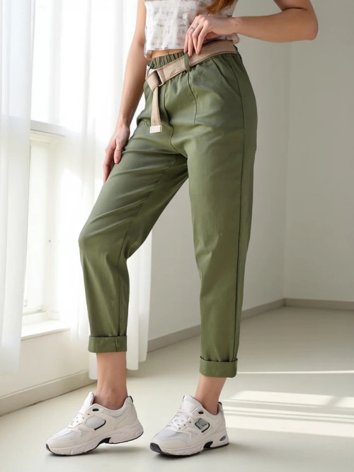 - Pantaloni drepți fenomenali, fabricați dintr-un material ușor, modelul dispune de un brâu elastic și o curea. În plus, 2 buzunare. Un hit al acestui sezon! NOTĂ: Precizia măsurătorii (+/-) 1 cm.