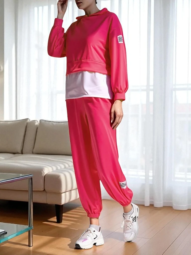 - Set casual pentru femei realizat dintr-un material plăcut. Puloverul are mâneci lungi și o inserție asemănătoare cu o cămașă. Pantalonii au 2 buzunare laterale, elastic la talie și la manșete. Perfect pentru cei care apreciază confortul.