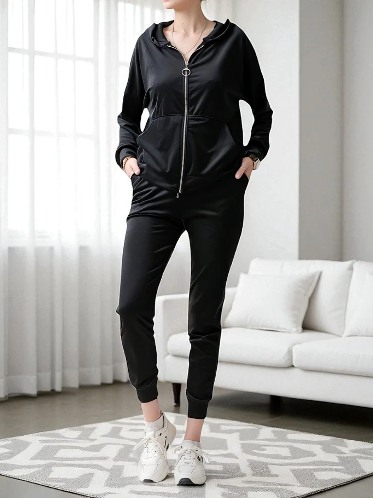 • Set pentru femei a'la catifea realizat dintr-un material plăcut. Hanorac cu fermoar și glugă. Pantaloni lungi cu talie elastică, 2 buzunare. Simte stilul în acest set minunat!