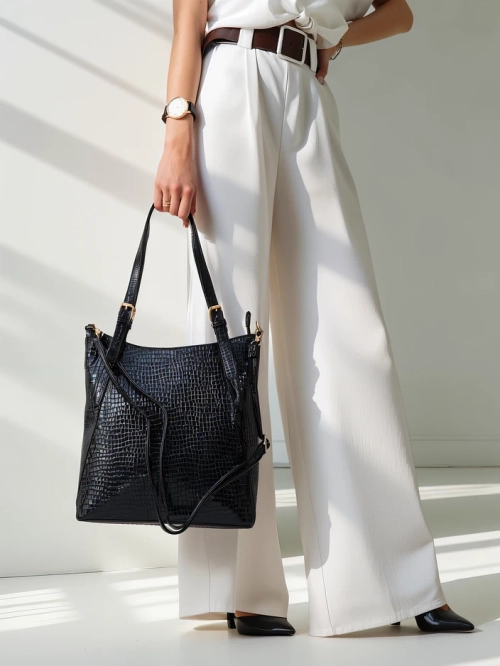 Royalfashion Geantă de damă mare din ecopiele cu folie cu embosare
