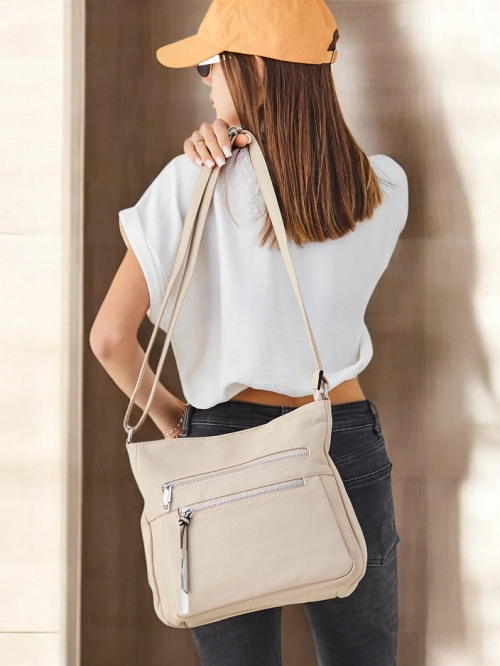 - Geantă de mână pentru femei cu fermoar, fabricată din eco-piele. Modelul are 1 compartiment, 3 buzunare interne și 3 buzunare externe. În plus, dispune de o curea detașabilă, ajustabilă. Perfectă pentru utilizarea zilnică!