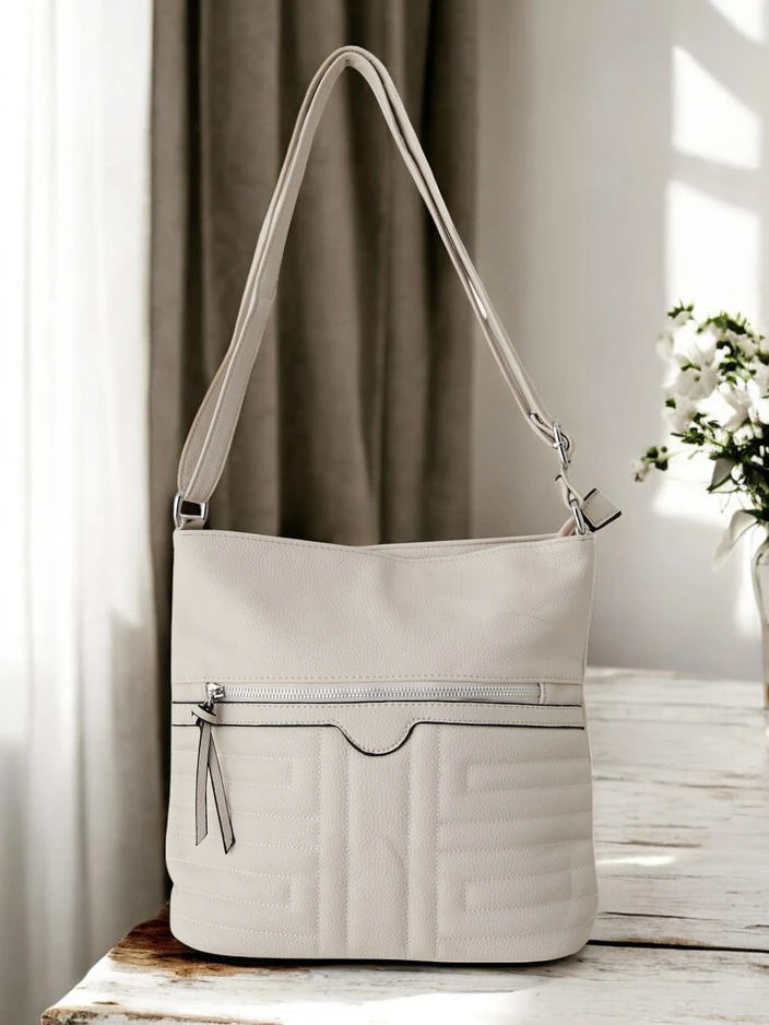 - Geantă pentru femei cu închidere cu fermoar, fabricată din piele ecologică. Modelul are 1 compartiment, 3 buzunare interioare și 2 buzunare exterioare. În plus, dispune de o curea ajustabilă. Perfectă pentru utilizarea zilnică!