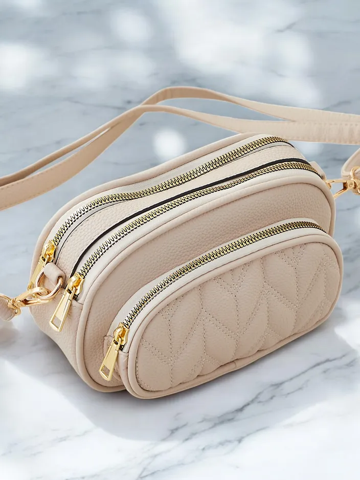 - Geantă ovală pentru femei cu fermoar, din ecoge leather. Modelul dispune de 2 compartimente și un buzunar exterior. În plus, are o curea detasabilă, ajustabilă. Perfectă pentru utilizarea zilnică!