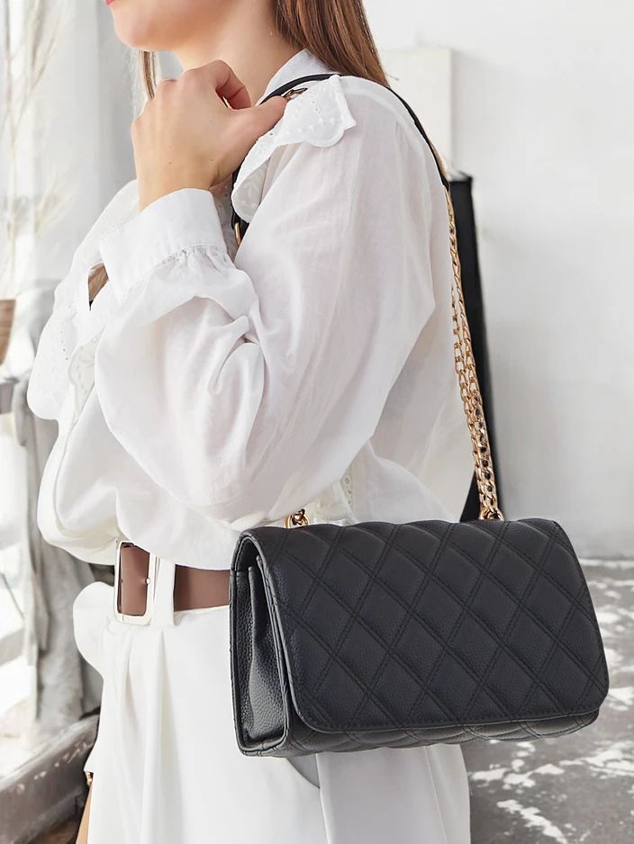 - Geantă elegantă mică din eco-piele, matlasată, cu închidere magnetică. Modelul are 1 compartiment cu un separator. În plus, dispune de o frumoasă lanț. Perfectă pentru utilizarea zilnică!