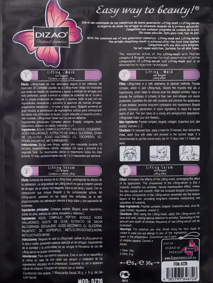 DIZAO - Set de ser și mască cu aur 6g+36g x 10 buc
