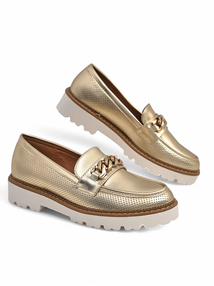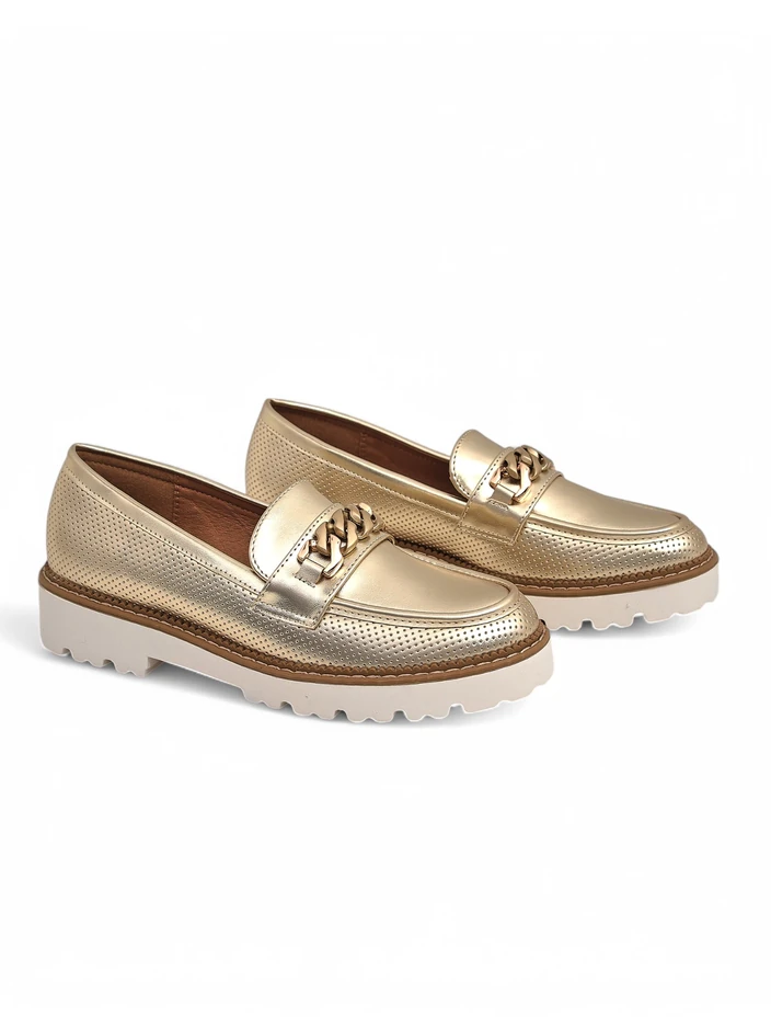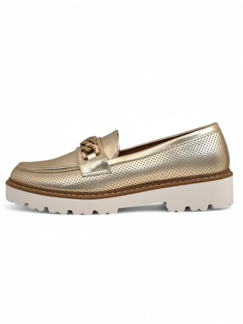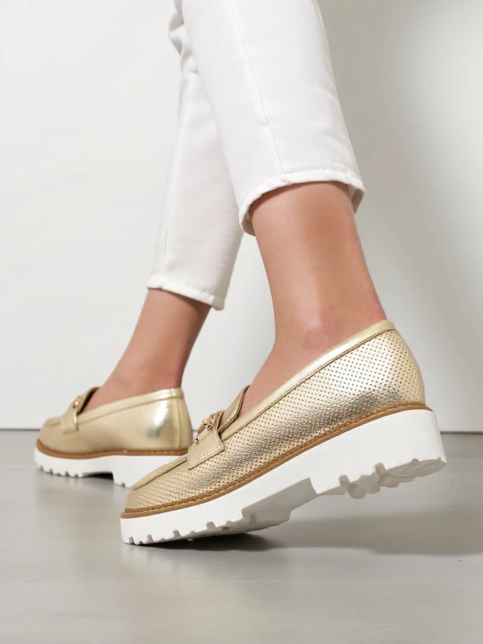 Acești mocasini unici combină designul modern și eleganța clasică. Fabricate din piele sintetică de înaltă calitate, au un finisaj perforat care asigură o ventilație excelentă. Datorită tălpii din cauciuc solid, acești pantofi nu sunt doar stilați, ci și confortabili și durabili pentru plimbări lungi. Decorate cu detalii subtile sub forma unei catarame metalice, adaugă șic și unicitate. Perfect pentru asociere cu ținute casual sau elegante.