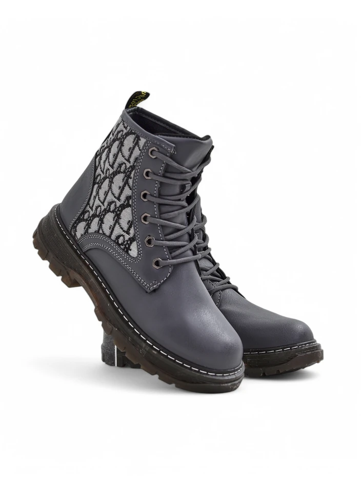 • Ghete de damă uimitoare cu toc plat, realizate din eco-piele și țesătură cu imprimeu. Interiorul este căptușit cu țesătură. Model cu șireturi.