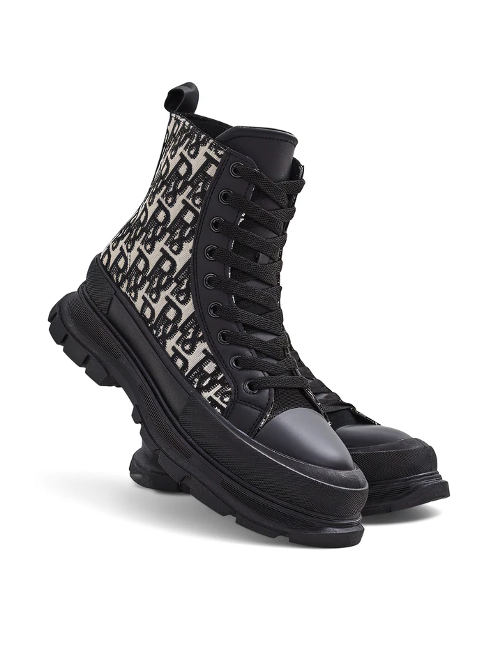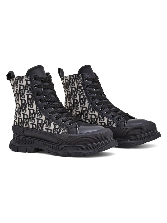 - Cizme de gleznă minunate pentru femei cu toc plat, realizate din eco-leather și țesătură imprimată. Interiorul este căptușit cu țesătură. Model cu șireturi.