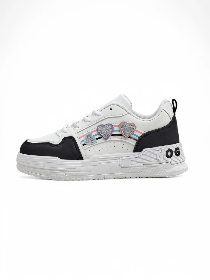 - Adidași pentru femei cu talpă plată - o combinație perfectă de stil și confort. Încălțămintea este fabricată din eco-piele. Model cu șireturi și branț din material textil. Ideal pentru persoanele active!
