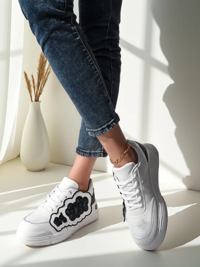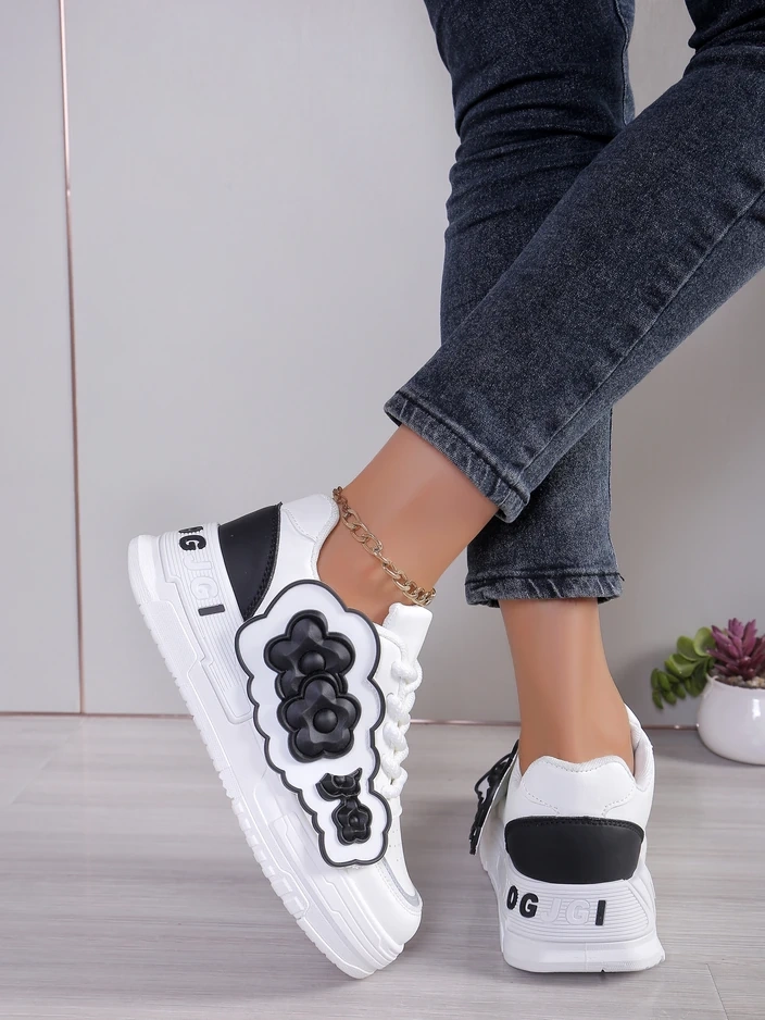 • adidași eco-dermatici pentru femei cu o talpă din material textil pe platformă, combinând confortul cu un design stilat. Perfecți pentru purtarea zilnică, oferă ușurință și confort, în timp ce designul subtil adaugă eleganță oricărei ținute.