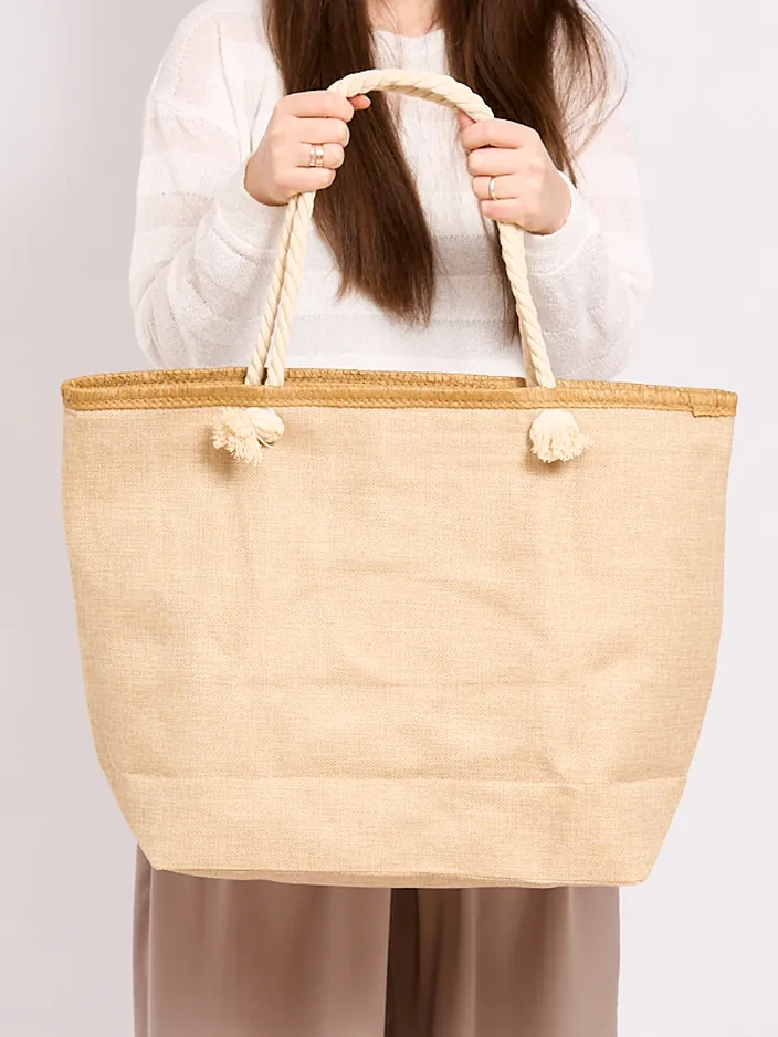 - Geantă elegantă din material, finisată cu imprimeu. Geanta are mânere mai lungi, se închide cu fermoar și are 1 buzunar interior. Va fi grozavă pentru plajă!