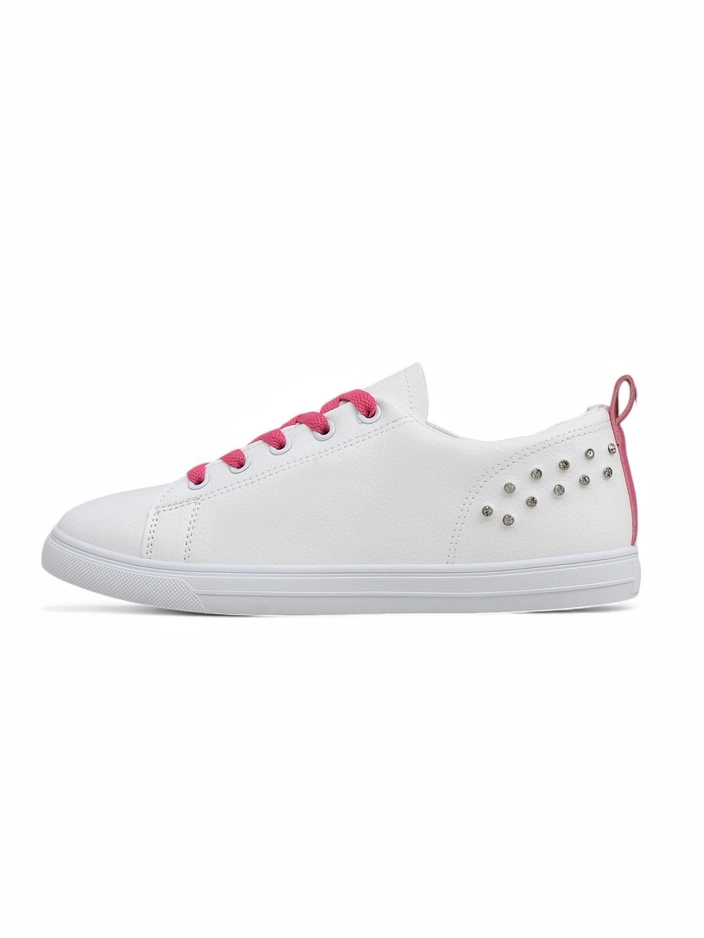 - Adidași originali pentru femei cu talpă plată - combinația perfectă de stil și confort. Încălțămintea este fabricată din eco-piele. Model cu șireturi și branț din material textil. Perfect pentru persoanele active!