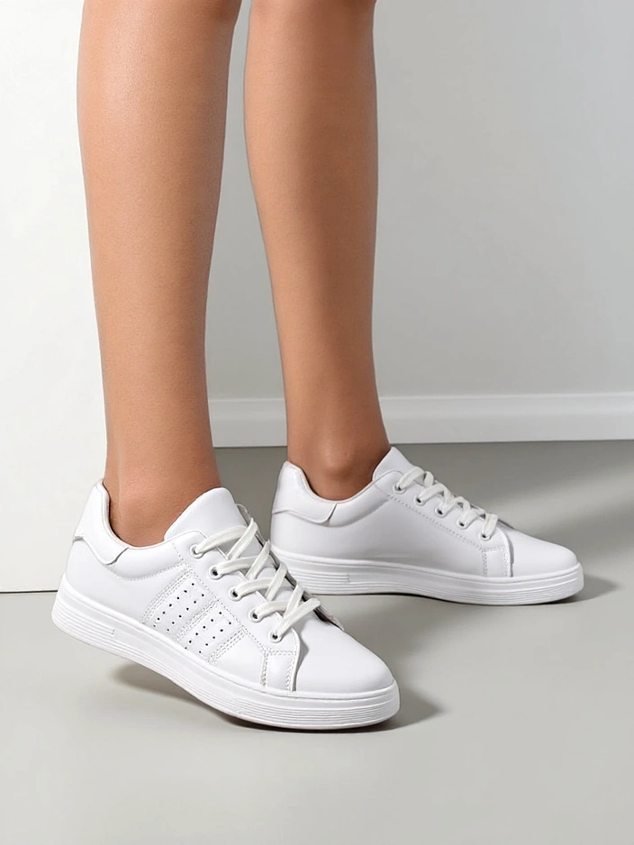 • Pantofi sport eleganți pentru femei cu șiret, cu talpă plată. Partea superioară este confecționată din piele ecologică. Talpă interioară din țesătură. Pantofi confortabili pentru fiecare zi!