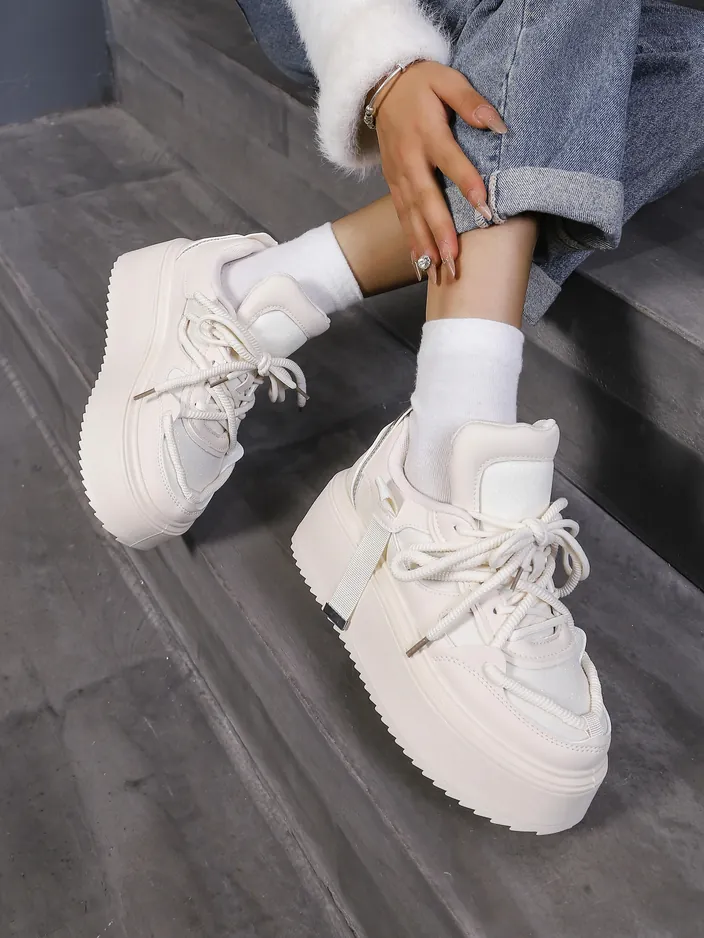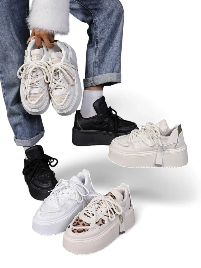 - Tenisi cu platformă pentru femei - o combinație perfectă între stil și confort. Încălțămintea este fabricată din eco-piele. Model cu șireturi și talpă din material textil. Ideal pentru persoanele active!