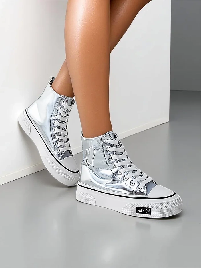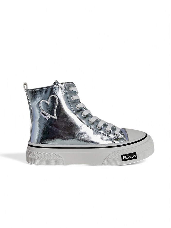 Royalfashion Adidași înalți pentru femei cu inimă Inimă argintie