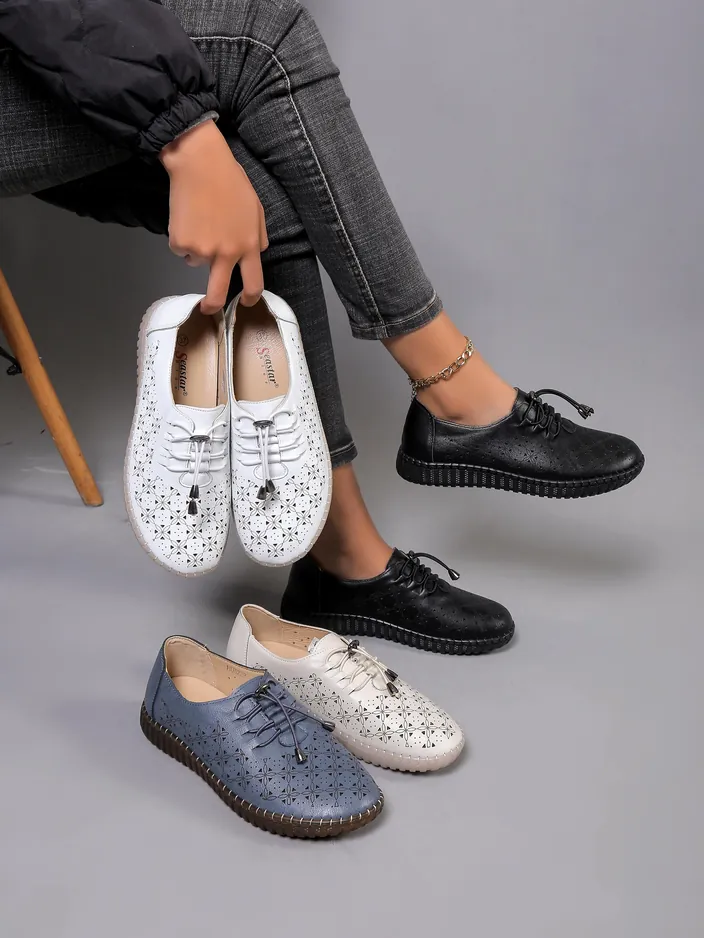 - Pantofi perforați pentru femei cu o talpă mai groasă. Partea superioară slip-on este făcută din eco-leather, branțul este din eco-leather. O bază ideală pentru ținutele de zi cu zi!