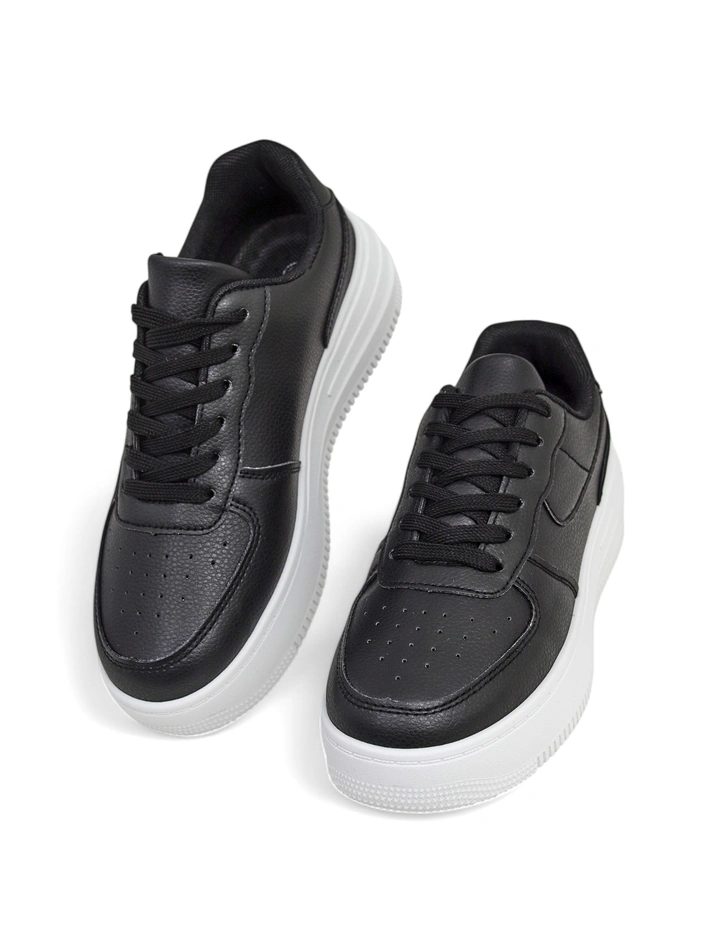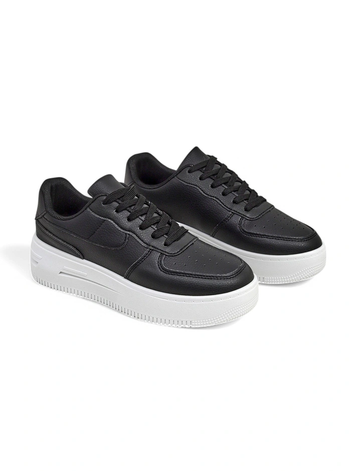 • Adidași fenomenali pentru femei, cu o talpă mai groasă - o combinație perfectă de stil și confort. Încălțămintea este fabricată din piele ecologică. Model cu șireturi, cu branț din țesătură. Ideal pentru persoanele active!
