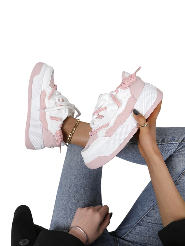 - Pantofi sport pentru femei cu o talpă mai groasă - combinația perfectă între stil și confort. Încălțăminte din ecopiele. Model cu șireturi și branț din material textil. Ideal pentru persoanele active!