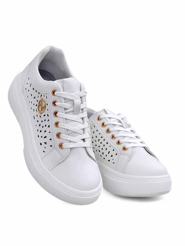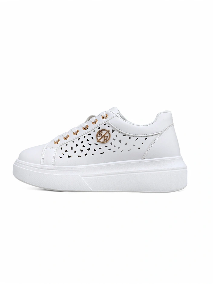 Sneakers de damă Calista Bianco din piele ecologică, ajurați, de primăvară, 4,5 cm