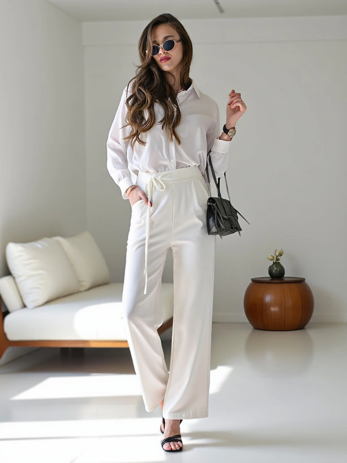 Pantaloni largi pentru femei Royalfashion cu legătură pe lateral