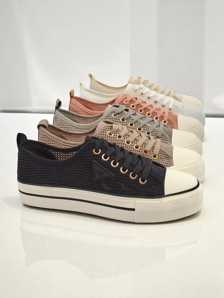 Diseño simpel i tela di mesh ta pas ku e moda pa sneakers konbiniente i ku ta laga bo pia hala rosea, ku ta reina riba kayanan di e siudatnan mas grandi di mundu. Rum pretu ku suela un tiki mas haltu ta un di e modelonan mas skohementu e temporada aki – nan ta kombiná ku kasi tur kos i ta permití bo ekspresá bo estilo personal.