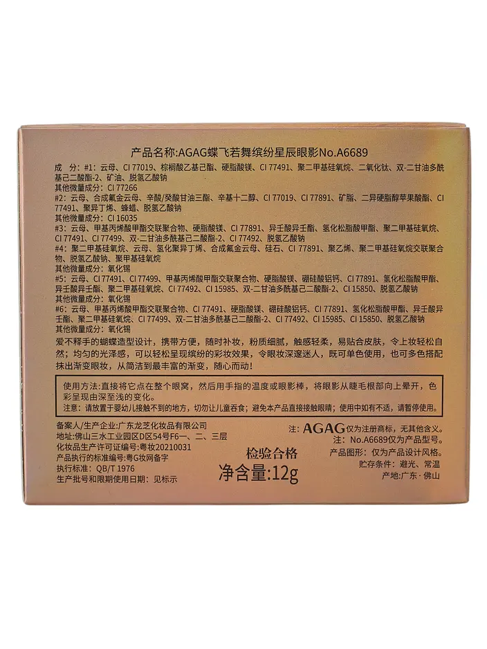 Paletă cu 6 farduri de pleoape în formă de flutur 0112g