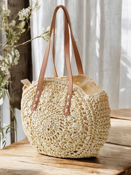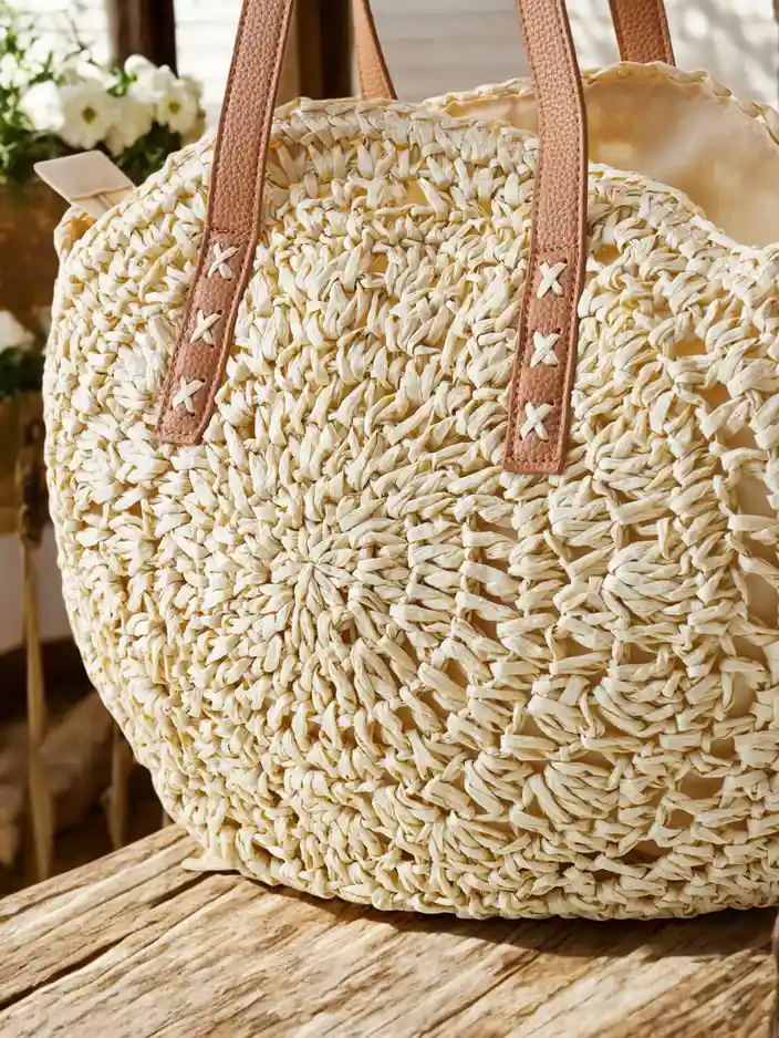 - Geantă mare pentru femei, confectionată din paie împletită. Modelul se închide cu un fermoar, are 1 compartiment principal și 1 buzunar suplimentar. Un accesoriu ideal pentru ținutele de vară!