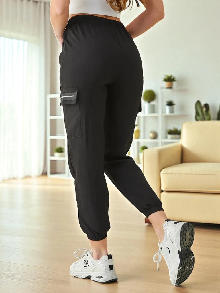 Pantaloni Elenna Sportowe Długie Czarne z Kieszonią