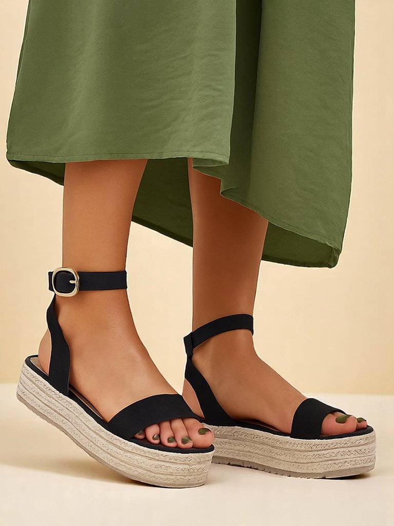 - Sandale cu platformă pentru femei. Sandalele sunt fabricate din eco-suede și au o brant din eco-piele. Înc footwear vine cu închidere cu cataramă și are o talpă decorativă din sfoară de jute. Perfecte pentru a crea ținute de vară la modă!