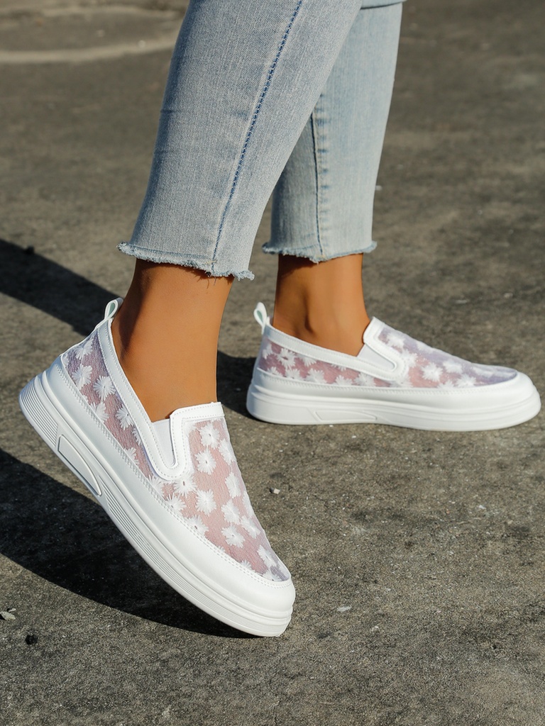 - Mocasi ușori pentru femei, cu talpă plată. Model de stil casual, realizat dintr-un material asemănător cu plasă, decorat cu flori!