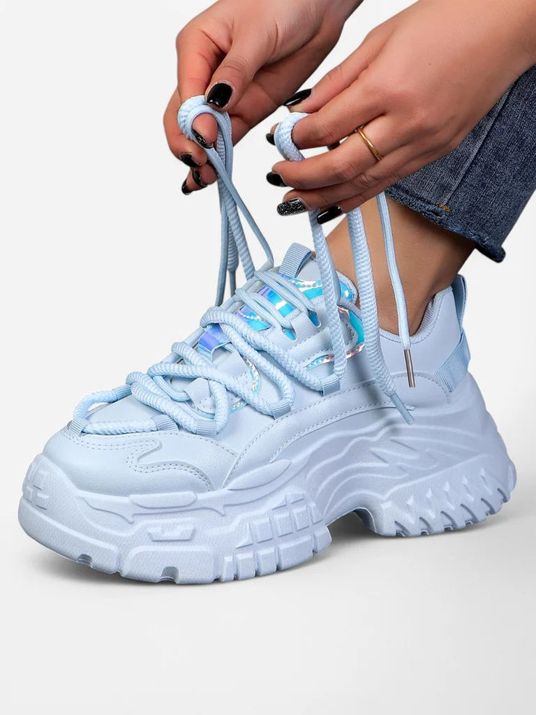 - Damskie buty sportowe typu sneakersy na grubszej podeszwie. Model wykonany ze skóry ekologicznej oraz tkaninowej wkładki. Super dodatek do twoich codziennych outfitów w stylu casual!