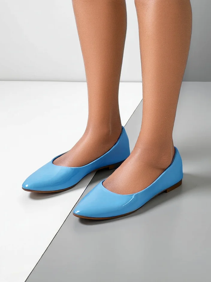 • Balerini unici din piele ecologică lacuită cu vârf ascuțit. Tălpica moale din piele ecologică oferă confort. Vor fi perfecte pentru ținute elegante și la modă!
