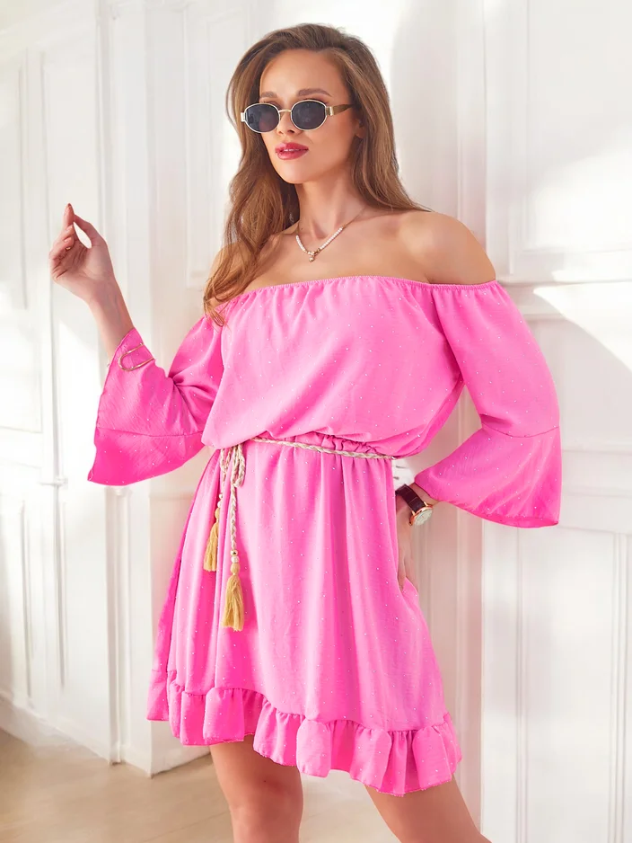 - Rochia mini pentru femei în stil spaniol cu mâneci lungi și pietre strălucitoare combină eleganța și sensualitatea. Detaliile strălucitoare îi conferă un caracter unic, perfect pentru ieșirile de seară.