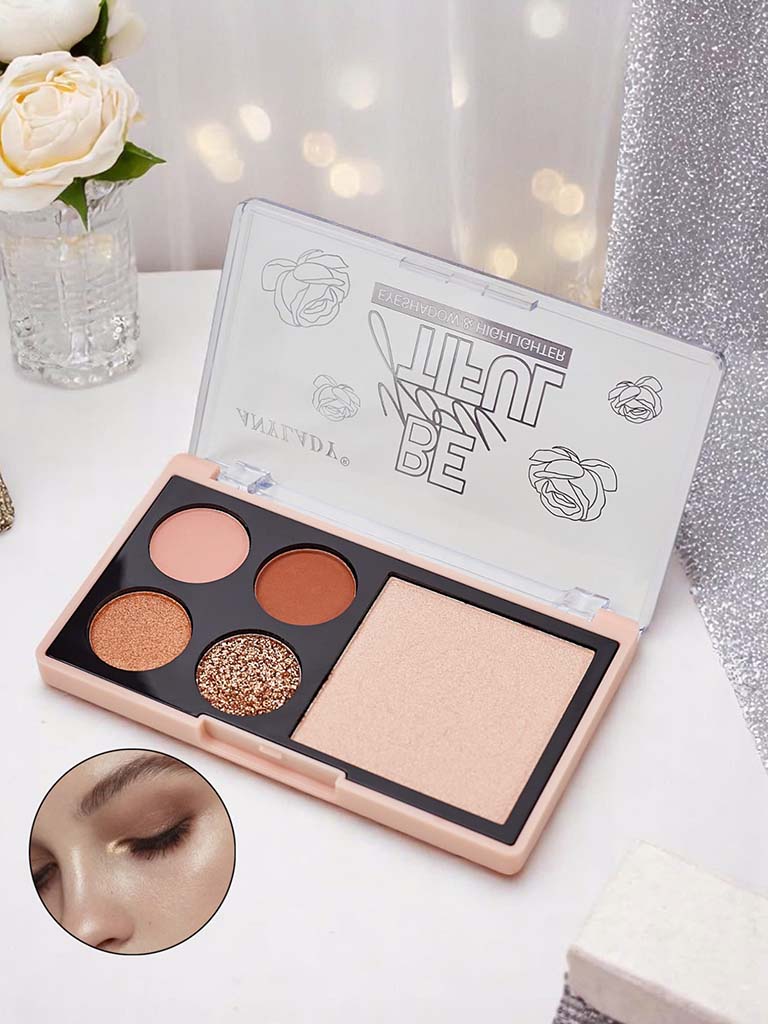 - Paleta de 4 farduri de pleoape cu sclipici și iluminator este instrumentul perfect pentru crearea unor machiaje uimitoare. Conține farduri de pleoape cu pigmentare intensă și un iluminator subtil care va adăuga strălucire și va evidenția privirea.