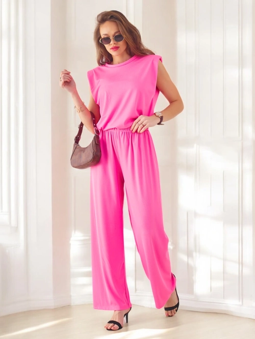 Set din viscoză ribbed pentru femei Royalfashion, fără mâneci, cu pantaloni evazați