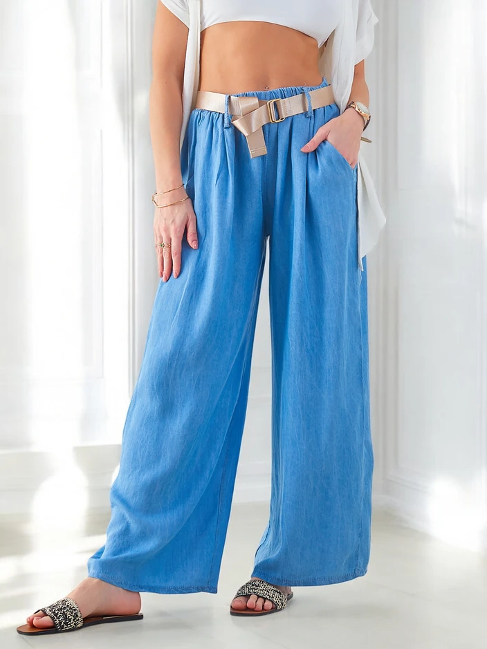 Pantaloni largi airy pentru femei Royalfashion cu curea