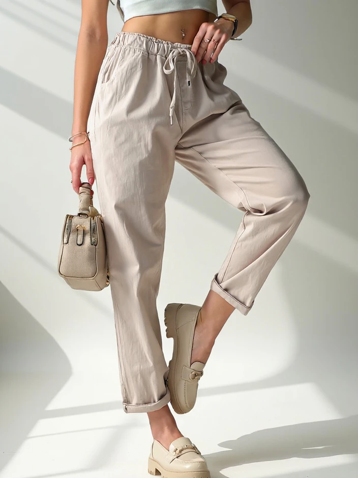 • Pantaloni mai largi din material ușor, modelul are un elastic la talie și două buzunare. Confortabili și practici! NOTĂ: Precizia măsurătorii (+/-) 1 cm.