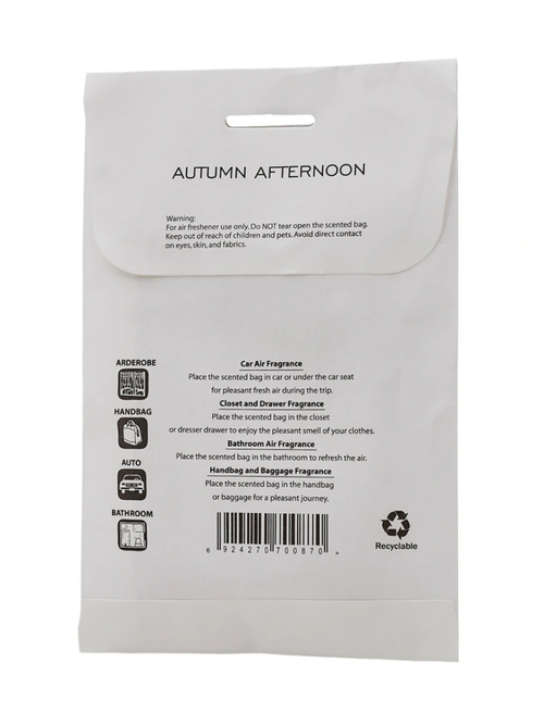 • Sacheții parfumați sunt soluția ideală pentru a adăuga o aromă plăcută mașinii, genții, dressingului sau băii tale. Cu forma lor compactă, elimină eficient mirosurile neplăcute, lăsând un parfum proaspăt și plăcut în fiecare cameră!