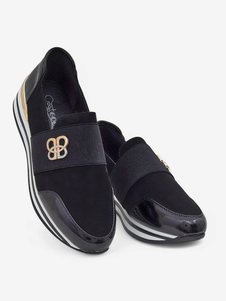Elektra Nero ta slip-onnan di hende muhé úniko ku ta sobresalí den elegansia i versatilidat. Nan ta trahá di kuero ekológiko mat i lak di alta kalidat, ku no solamente ta agregá un look moderno, sino tambe ta garantisá durabilidat i resistensia kontra daño. E kuero ekológiko a wòrdu someté na un proseso di akabamentu spesial, hasiendo e sapatunan agradabel pa mishi kuné i fásil pa mantené limpi. E plantia tambe ta trahá di kuero ekológiko, ofresiendo komodidat asta durante oranan largu di uso. E uso di un hilchi plat di 3.5 cm i elastiek fleksibel ta hasi e sapatunan stabil i fásil pa bisti, ideal pa aktividatnan di tur dia. E kolekshon Elektra Nero ta destiná pa e temporada di primavera, zomer i herfst, i ta respondé na e nesesidatnan di hende muhé moderno ku ta apresiá komodidat i estilo. E sapatunan ta ideal komo un base pa diferente estilo: - Estilo kasual: Kombiná e slip-onnan ku jeans kla tipo boyfriend i un kamisa 'oversize', kreando un look moderno pa topa ku amigunan. - Pa ofisina: Bisti ku sigaret pantalon pretu elegante i un kamisa blanku klásiko – aksentonan di oro lo agregá elegansia na kombinashonnan di paña di negoshi. - Paseo di anochi: Bisti e slip-onnan ku un bistí midi di triki i un trenchcoat leve – un estilo urbano elegante kla! Pa kuida e sapatunan, ta sufisiente pa limpia nan regularmente ku un paña suave, i kita sushi ku un spòns húmedo. No mester muha e kuero ekológiko muchu ni eksponé na rayonan di solo pa un periodo largu – esaki lo yuda mantené frescura i koló pa mas tempu. Aktualmente den tendensia ta sapatunan slip-on plat i kómodo, ku ta kombiná minimalismo ku detayenan impreshonante – eksaktamente manera e modelo Elektra Nero. Akabamentunan di oro ta keda un di e éksitonan mas grandi di e temporada, sigurá un toke di luho na kada kombinashon di paña. E slip-onnan aki lo ta un eskoho ekselente pa hende muhé ku ta buska solushonnan moderno i eterno.