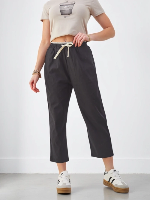 - Pantaloni lărgi fantastici din stofă ușoară, modelul dispune de 2 buzunare, o bandă elastică și șnururi la talie. Un element indispensabil în garderoba ta! NOTĂ: Precizia măsurătorii (+/-) 1 cm.