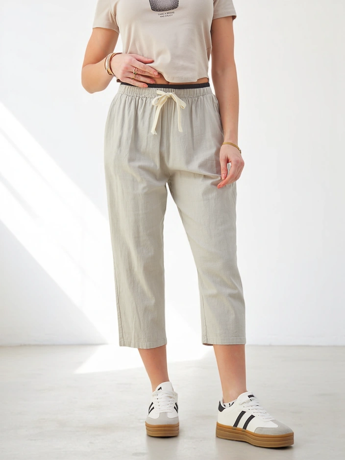 Pantaloni largi din bumbac pentru femei Royalfashion, cu funda