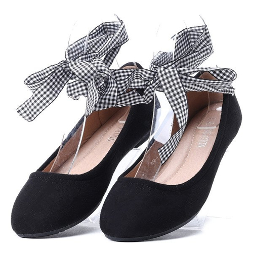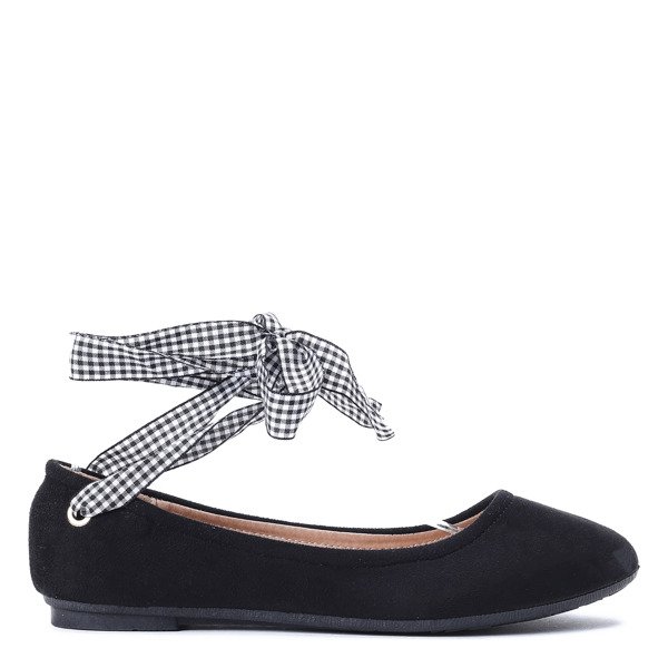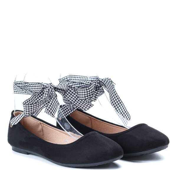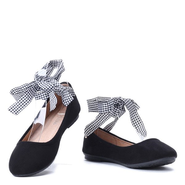 Czarne balerinki z ozdobną wstążką Mannia - Obuwie