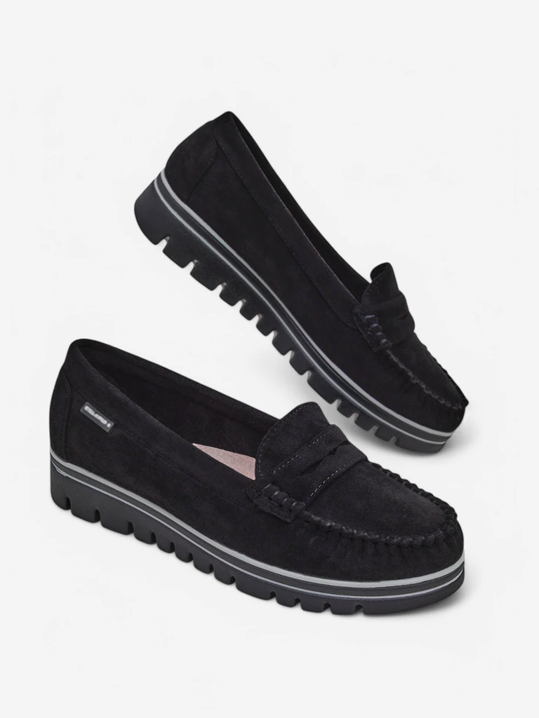 Descoperă noii mocasini negri Sabella, care îmbină eleganța cu un confort excepțional. Confecționați din piele ecologică întoarsă de înaltă calitate, acești pantofi nu numai că arată elegant, dar au și grijă de mediu. Pielea naturală a branțului asigură o ventilație excelentă și moliciune, ceea ce face ca purtarea lor pe tot parcursul zilei să fie o plăcere pură. Datorită tocului plat cu o înălțime de 3,5 cm, acești mocasini sunt ideali atât pentru serviciu, cât și pentru întâlniri casual cu prietenii.