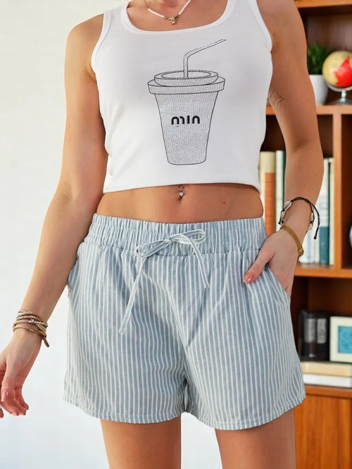 Royalfashion Șorturi pentru femei cu talie și șnur într-un model în dungi