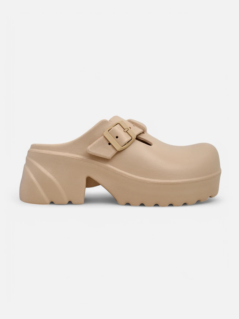 • Subliniază-ți stilul de vară și bucură-te de confort cu aceste sandale cu toc. Modelul este realizat din plastic cauciucat. Decorate cu vârful rotund. Platforma este împodobită cu catarame. Sunt alegerea perfectă pentru zilele de vară!