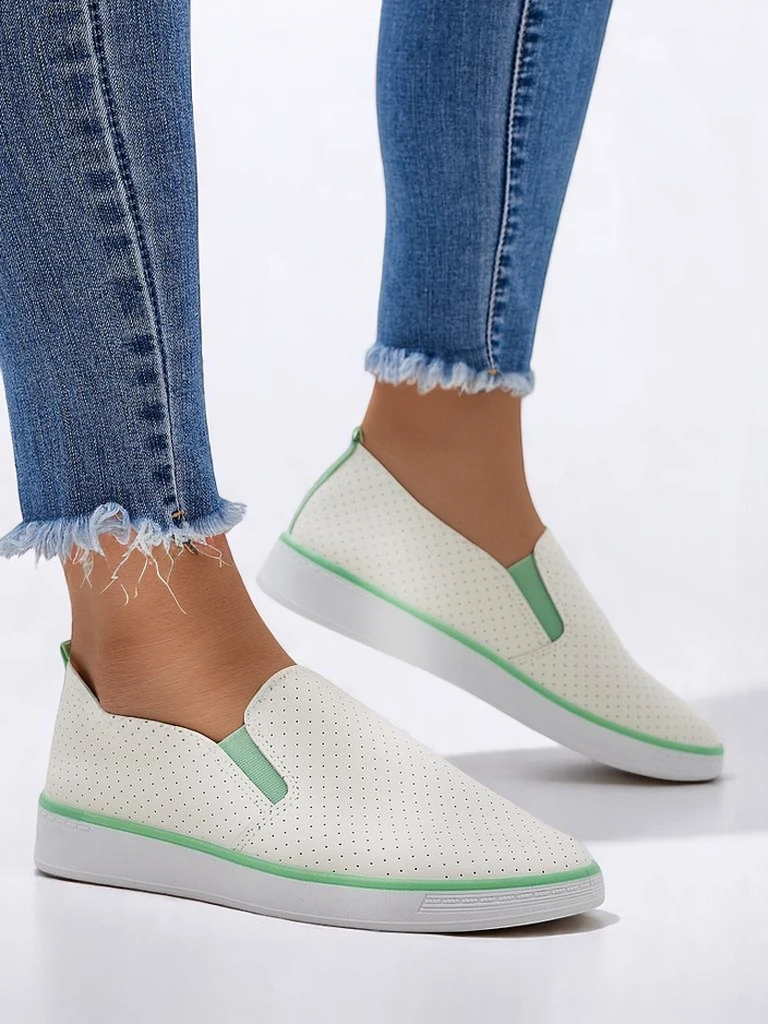 - Pantofi sport slip-on perforați pentru femei, fabricați din piele sintetică. Căptușiți cu țesătură. O alegere ideală pentru purtarea de zi cu zi!