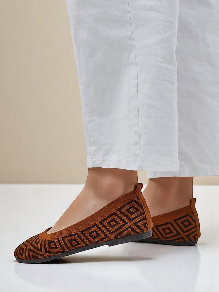 Pantofi balerini de damă Royalfashion din material textil cu imprimeu geometric Metric